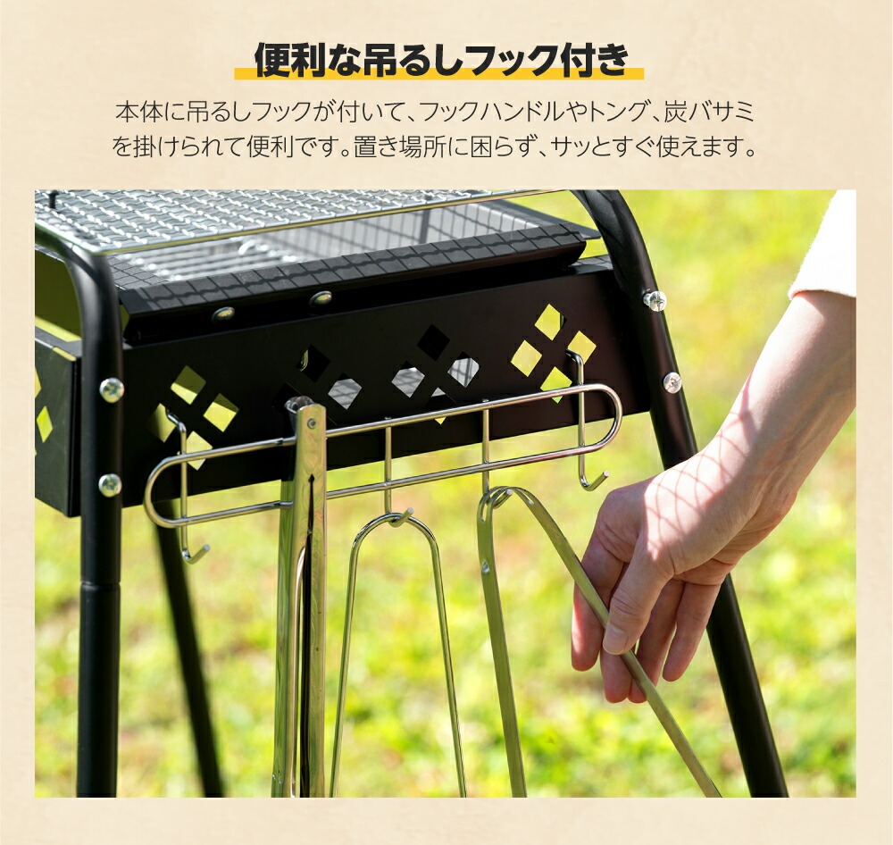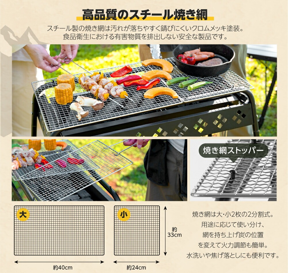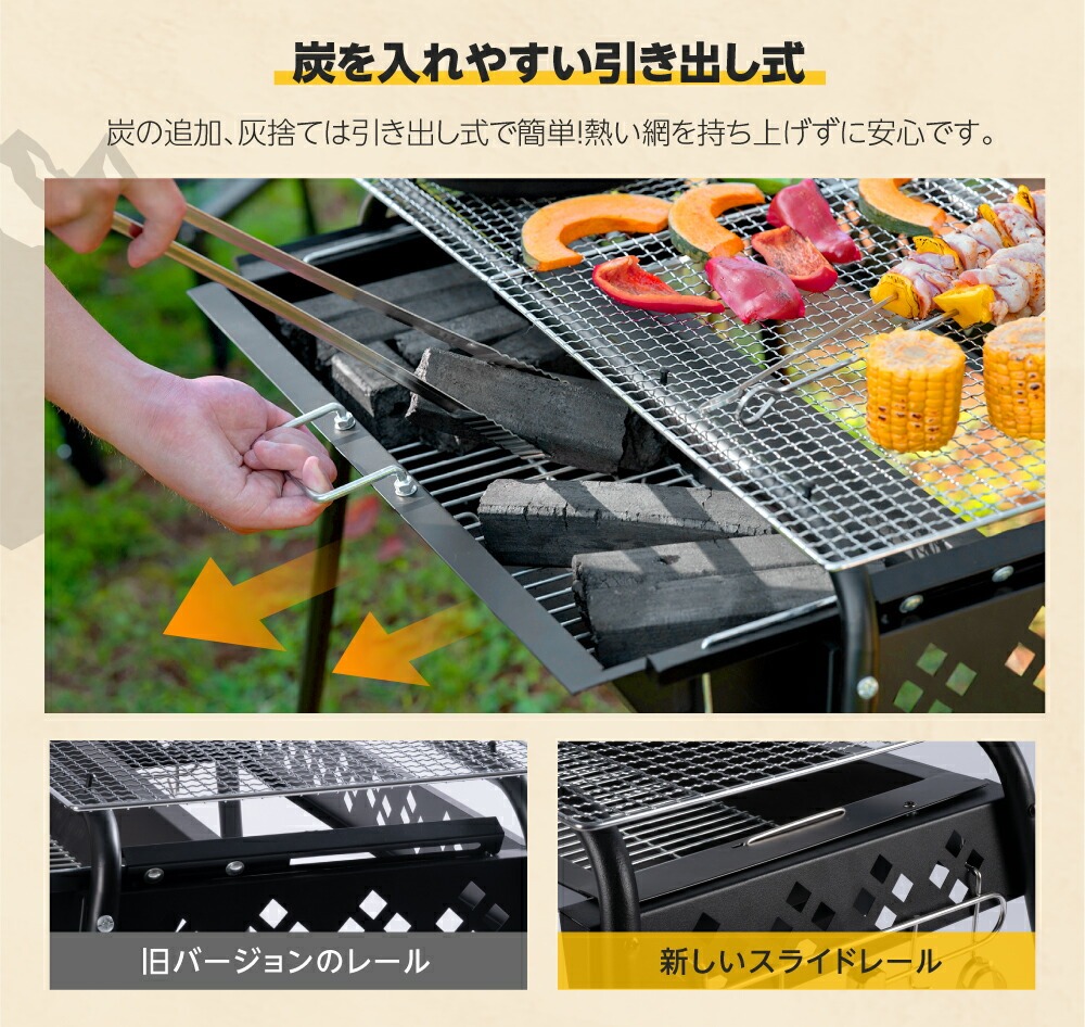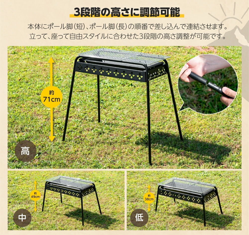 バーベキュー 高さ3段階調節可能 2-6人用 蒸し焼き スモーク料理 持ち運び簡単 便利 コンパクト W64×D33×H72